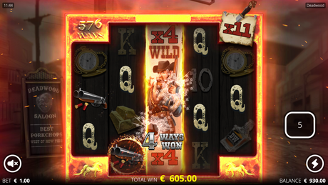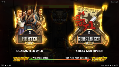Meet the bounty hunters of Deadwood - a 4-row high Wild symbol exists on all reels and will always nudge to fully visible. Each nudge increases the Wild multiplier by 1. Several Wild multipliers add to each other for a total Wild multiplier on the line win for huge wins!