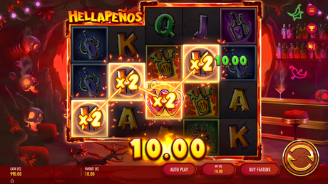 ThunderkickHellapeños is a video slot with 5 reels and 100 connecting pay lines. The game features Multiplier Wild symbols, Expanding Devil symbols and a Bonus Game with Free Spins and retriggers.